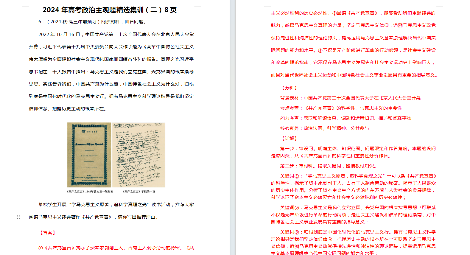 本文标题:2024年高考政治主观题精选集训(二)8页