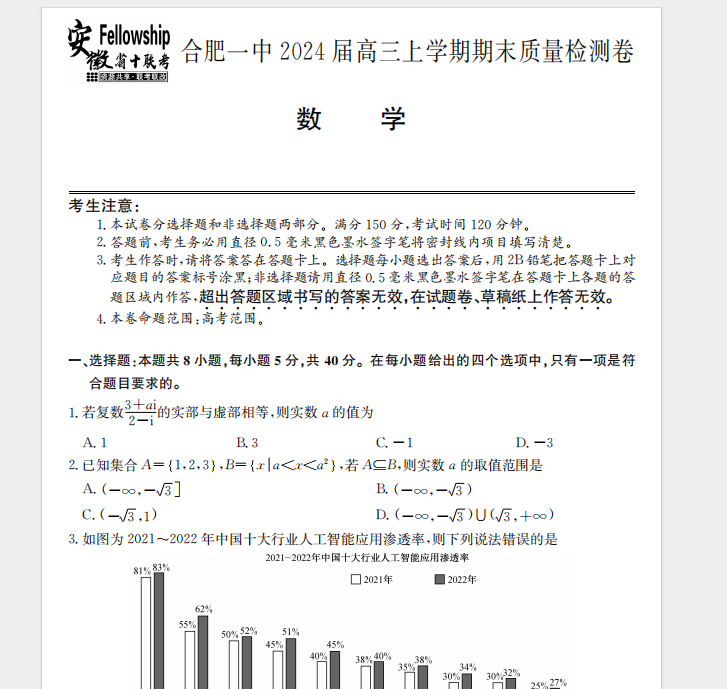 本文标题:2024届合肥一中高三上期末数学试卷+答案.zip