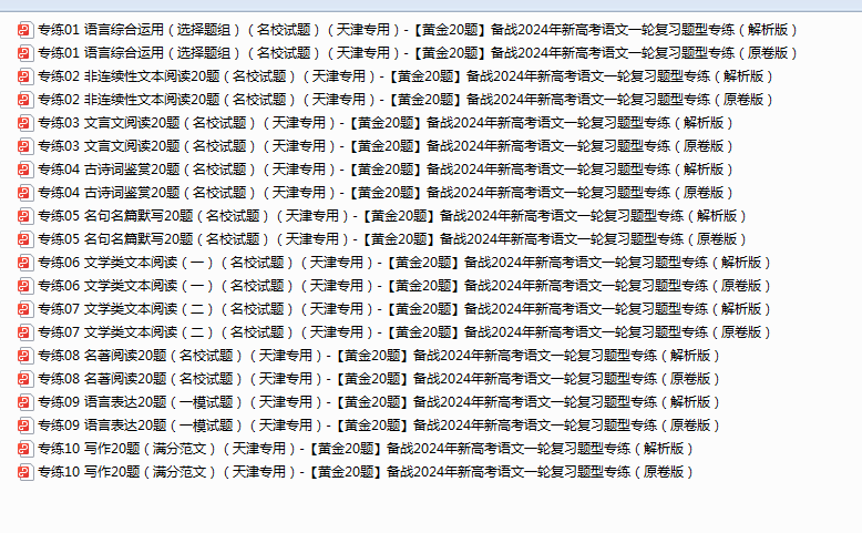 本文标题:【黄金20题】备战2024年新高考语文一轮复习题型专练(天津专用)原卷+解析1-10.zip