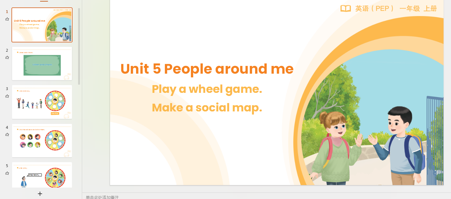 本文标题:人教PEP英语2024年一年级上册PPT课件:Unit 5 People around me (Play a wheel game. Make a social map.)_original.pptx