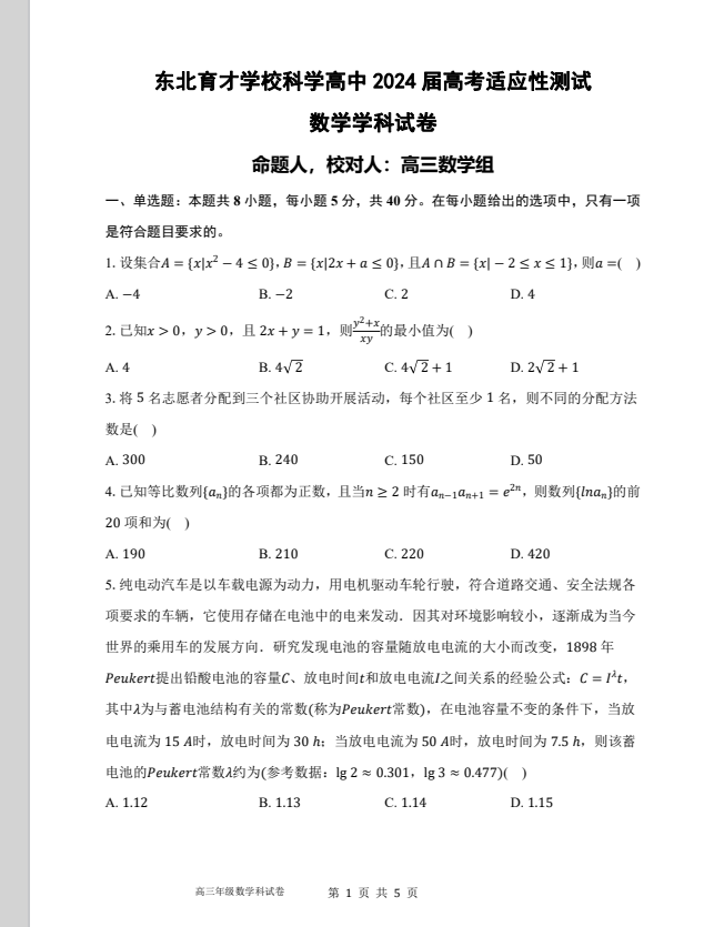 本文标题:2024届东北育才学校高三数学考前最后一模试卷+答案.zip