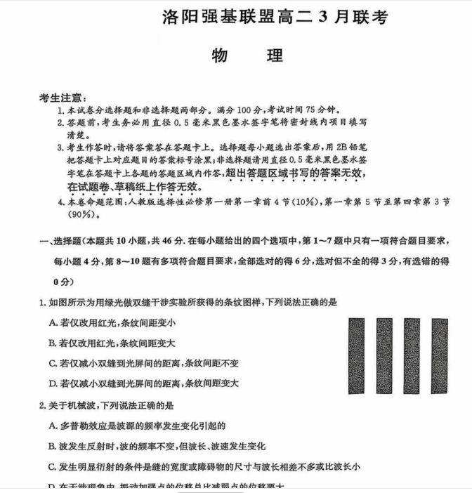 本文标题:河南洛阳强基联盟2024-2025学年高二下学期3月联考物理试题+答案.pdf