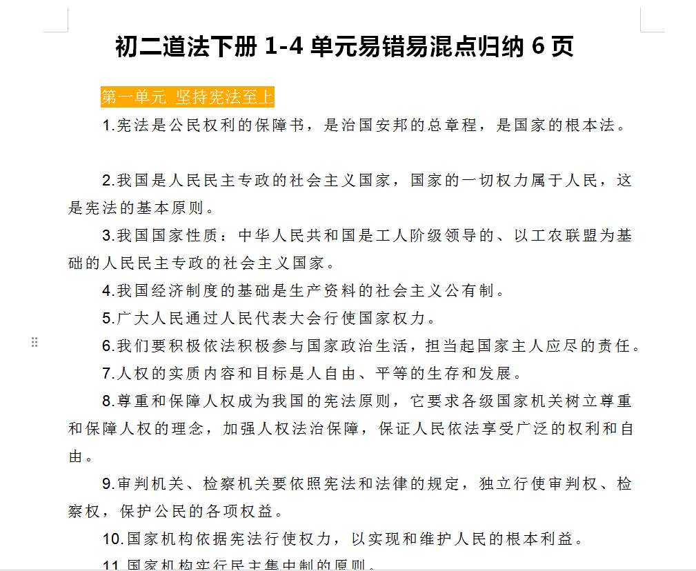 本文标题:初二道法下册1-4单元易错易混点归纳6页