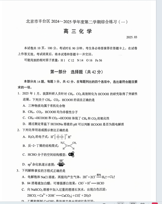 本文标题:2025北京丰台高三一模化学试题及答案.pdf