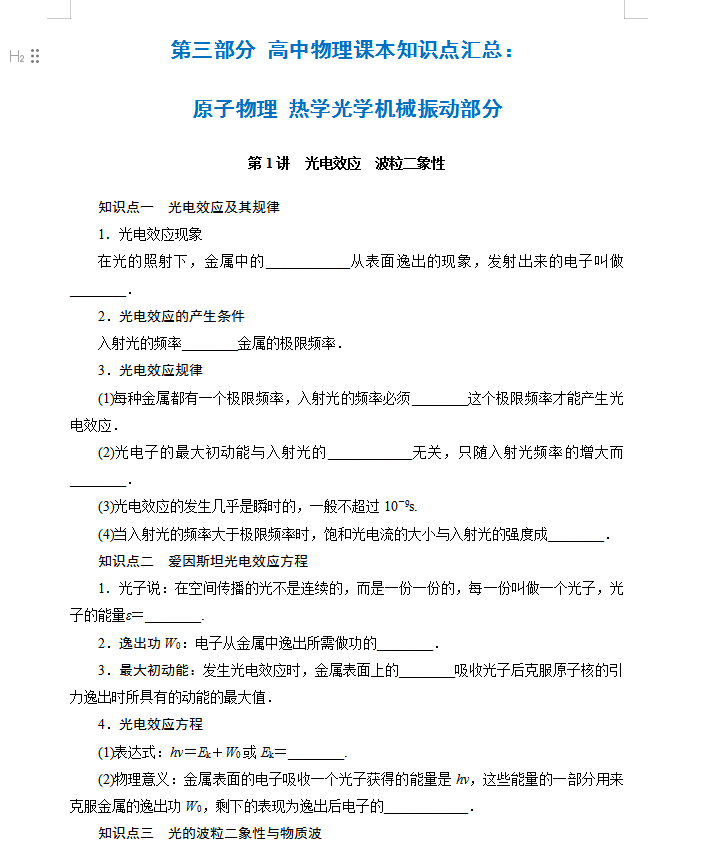 本文标题:高中物理回归课本知识汇总-人教版原子物理 热学光学机械振动部分24页