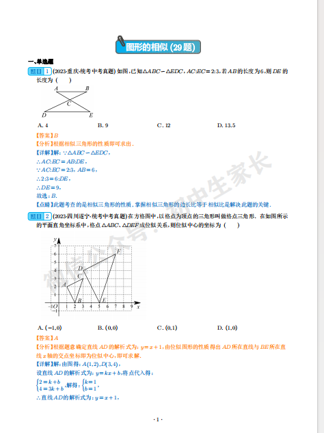 本文标题:2023年中考数学【图形的相似】真题汇编(共29题,解析版)(文件为压缩版,全部内容要用电脑下载)