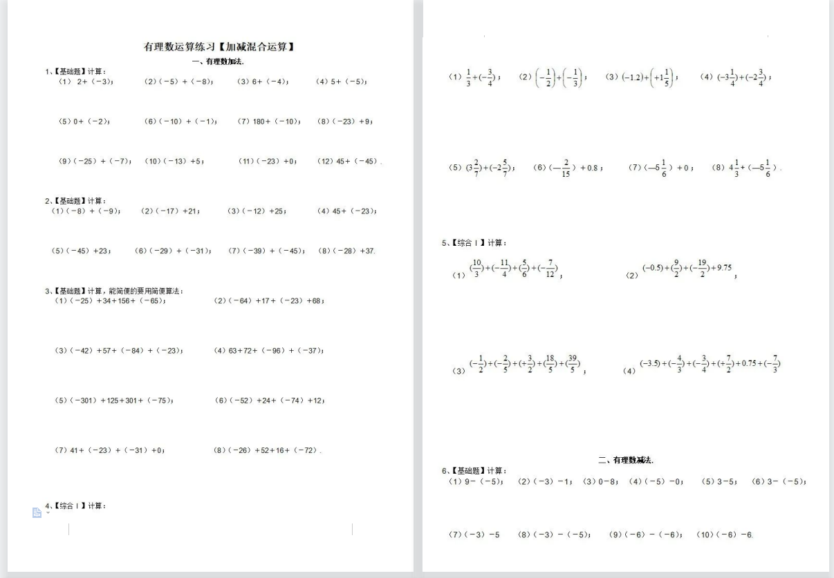 本文标题:七年级上册:有理数计算100题(全部内容,需要下载)