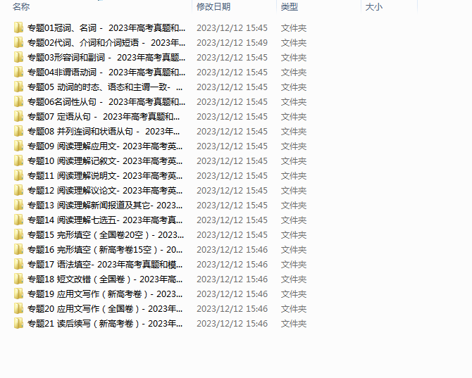 本文标题:2023年高考真题及模拟题英语分项原卷+解析21类汇编(全国通用)(文件为压缩包,要用电脑下载)