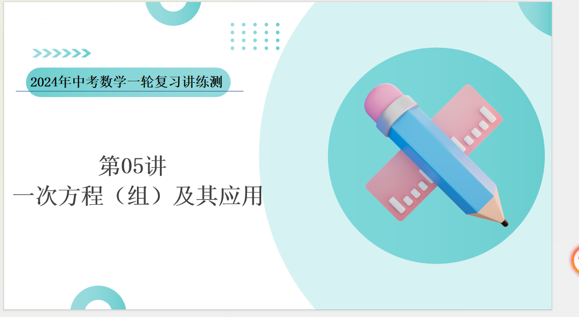 本文标题:第05讲 一次方程(组)及其应用(课件)-2024年中考数学一轮复习讲练测(全国通用).pptx