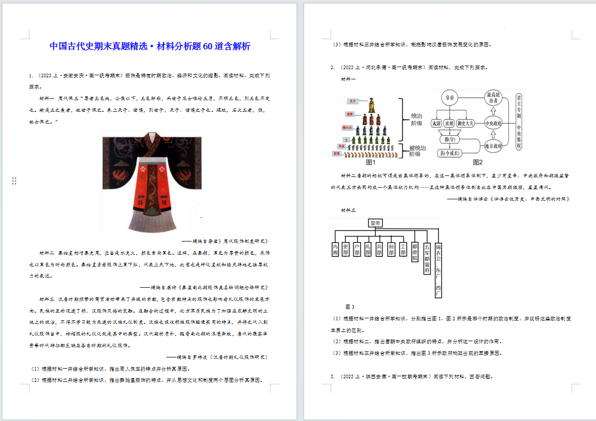 本文标题:高中历史—中国古代史期末真题精选·材料分析题60道含解析