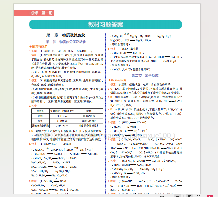 本文标题:1.2019人教版 高中化学必修第1册教材习题答案.pdf
