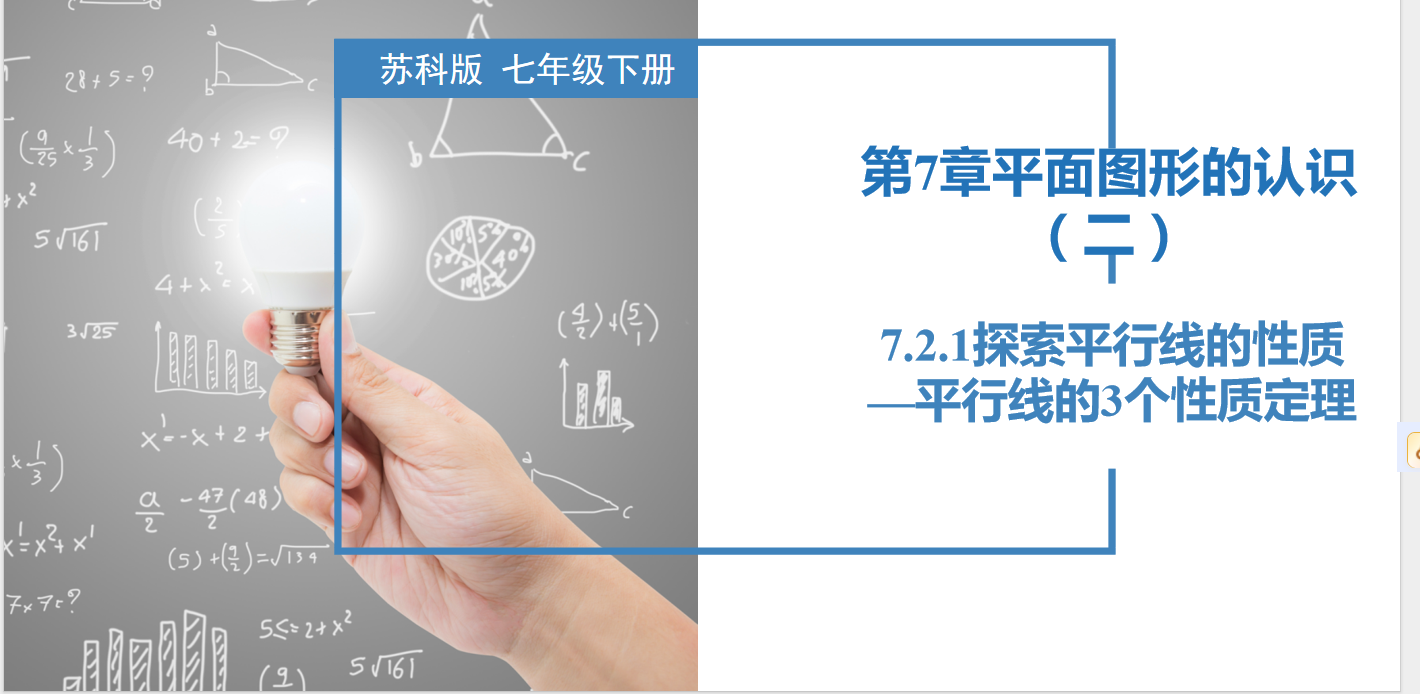本文标题:7.2.1 探索平行线的性质-平行线的3个性质定理(同步课件)-2023-2024学年七年级数学下册同步精品课堂(苏科版).pptx