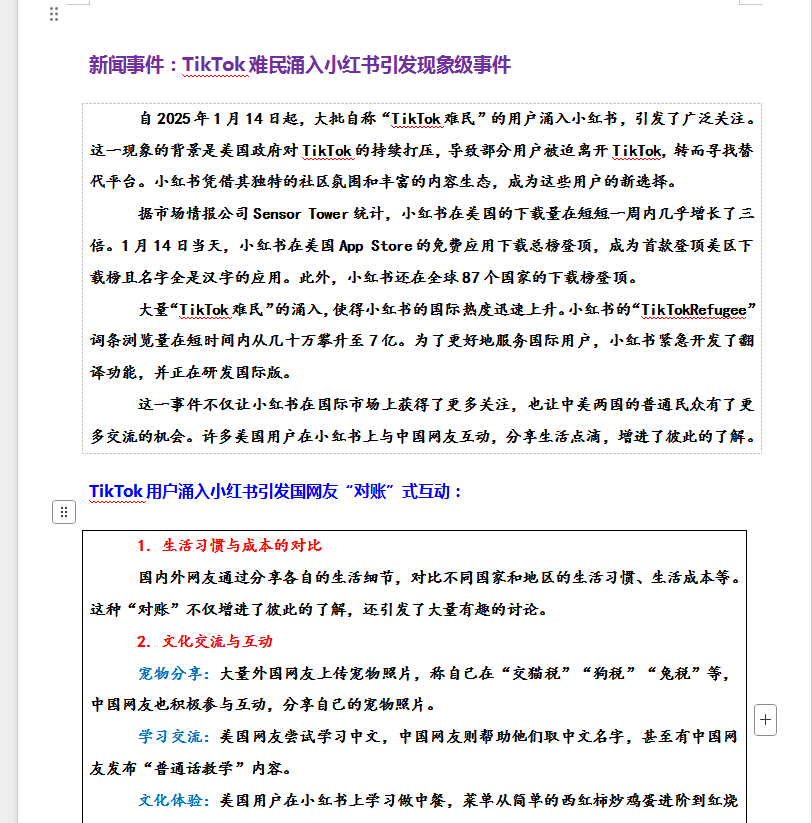 本文标题:2025热点素材:TikTok难民涌入小红书+最新素材+模拟范文10页