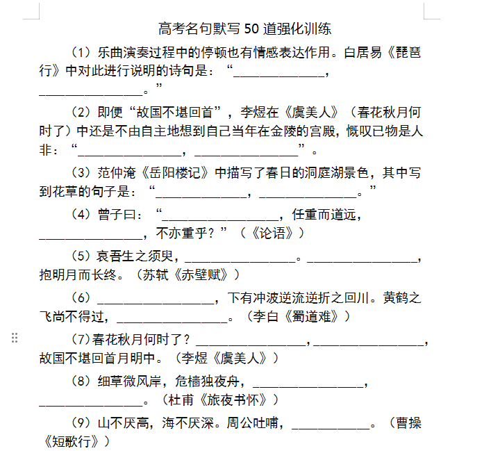 本文标题:高考名句默写50道强化训练