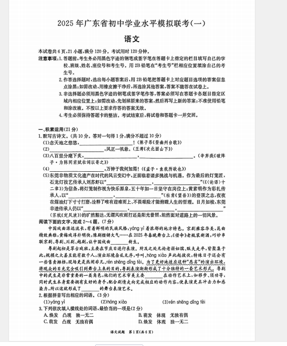 本文标题:2025年广东省东莞市中考一模语文试卷.zip