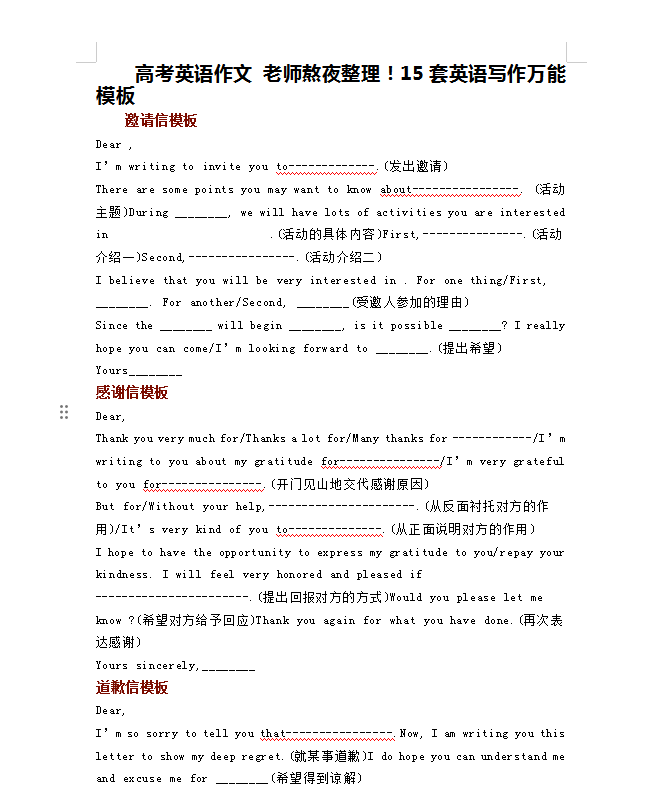 本文标题:高考英语作文 老师熬夜整理!15套英语写作万能模板